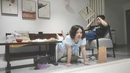 调教小母狗,直接吊起来干她 调教