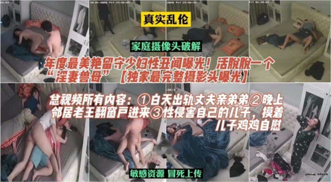【摄像头破解】万人求种 独家完整 乱伦 年度最美艳的淫妻兽母白天出轨丈夫弟弟 晚上邻居老王翻窗爱爱 凌晨摸儿子鸡巴自慰