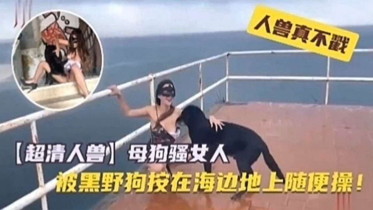 《超清人兽》母狗骚女人,被黑狗按在海边地上随便操~