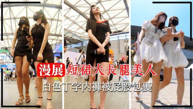 【抄底】【漫展抄底】短裙大长腿美人白色丁字内裤被屁股包裹